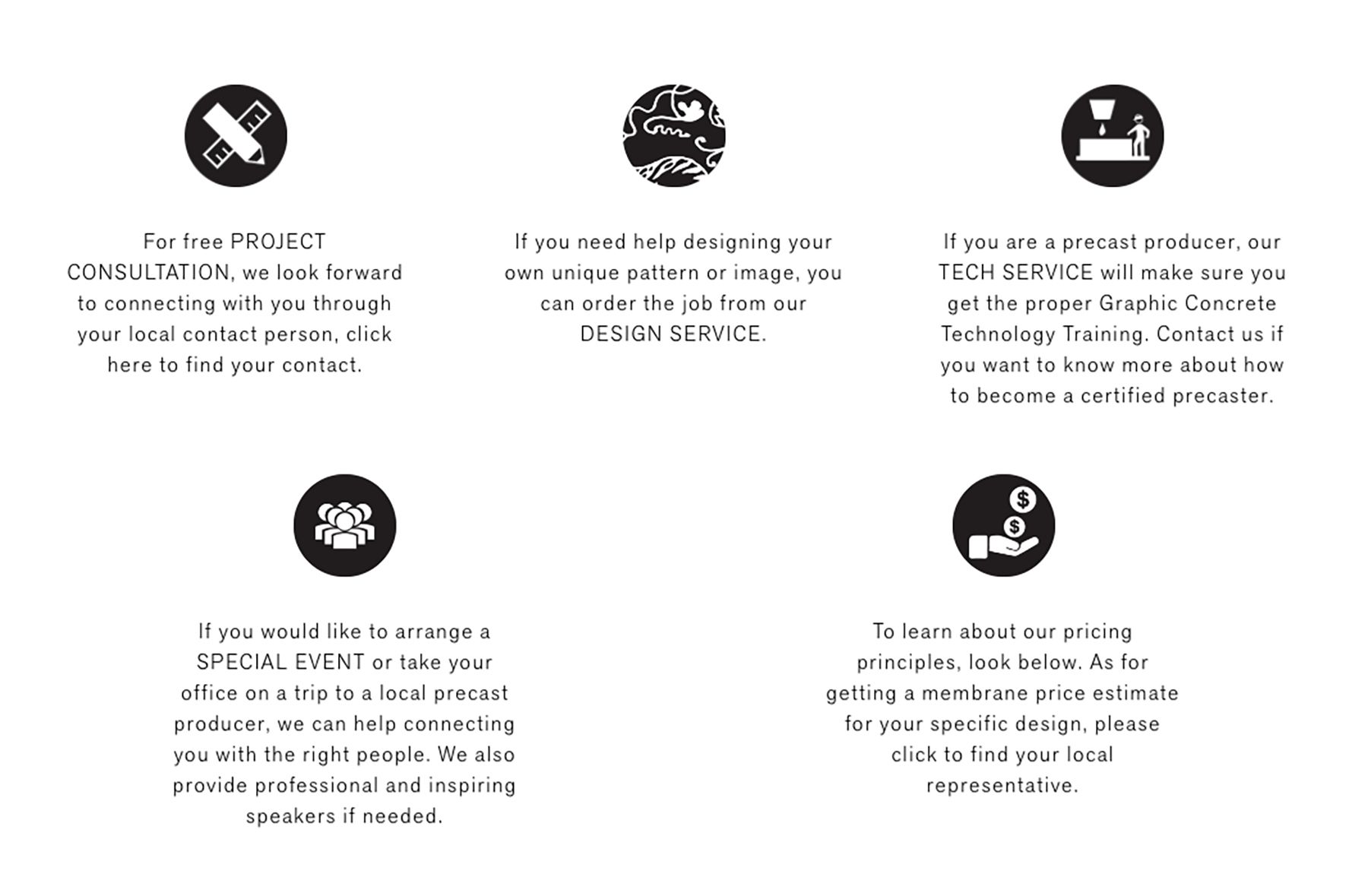 La membrana de Graphic Concrete se vende directamente a la fábrica local de prefabricados, que fija el precio del producto acabado de hormigón.